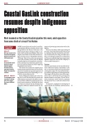 WORK resumed this week on the Coastal Gas- Link pipeline in British Columbia, which would link gas fields in the Dawson Creek area to the LNG Canada export terminal, which is cur- rently under construction in Kitimat. This comes despite several chiefs of a local First Nation issu- ing an eviction notice to the pipeline’s operator, TC Energy. The eviction notice was announced at the start of January, shortly after the British Columbia Supreme Court granted Coastal Gas- Link an interlocutory injunction against mem- bers of a local First Nation and others opposing the pipeline’s construction.