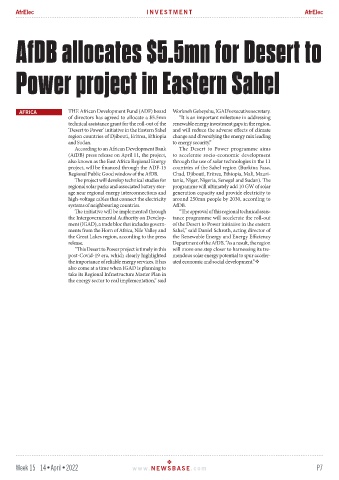 ment (IGAD), a trade bloc that includes govern- of the Desert to Power initiative in the eastern