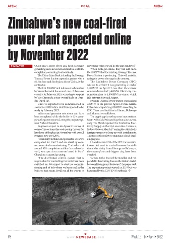 ZIMBABWE CONSTRUCTION of two coal-fired electricity November when we will do the unit handover.”