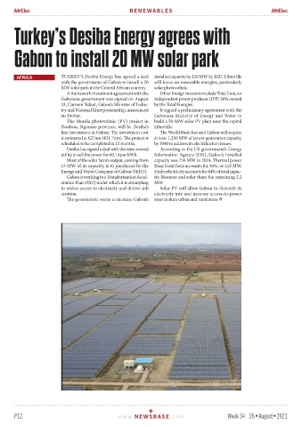 AFRICA TURKEY’S Desiba Energy has agreed a deal installed capacity by 250 MW by 2025. Libreville