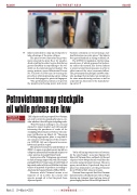 “PetroVietnam is seeking to cut costs and expand its export market and will consider increasing the purchases of crude oil for stockpiling when the prices bottom,” the com- pany told Reuters on March 18. “The group is building appropriate plans to respond to any scenarios of the impact [of the coronavi- rus (COVID-19)] on its financial resources, labour and product output.”