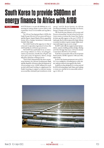 POLAND SOUTH Korea is to provide $600mn in co-fi- energy,” said Dr. Kevin Kariuki, the African