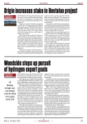 Hydrogen can be used in much the same way as gas, with Woodside saying that exports to Japanese power producers could help to reduce their carbon footprint. The Australian company said Japan’s government-backed New Energy and Industrial Technology Development Organ- ization (NEDO) had given the consortium the green light to conduct a feasibility study covering the entire hydrogen-as-ammonia value chain. The study will look into the construction and operation of world-class ammonia facilities as well as optimising supply chain costs.