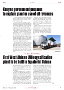 He explained that the $12mn in revenues collected from the sale of the 200,000 barrel cargo did not represent a pure pro t of $12m. Kenya still needs to cover the high expenses it incurred in the pilot programme, he said. ese costs include the expense of setting up drilling rigs, transporting crude oil by truck and reha- bilitating tanks and other storage facilities, he said.