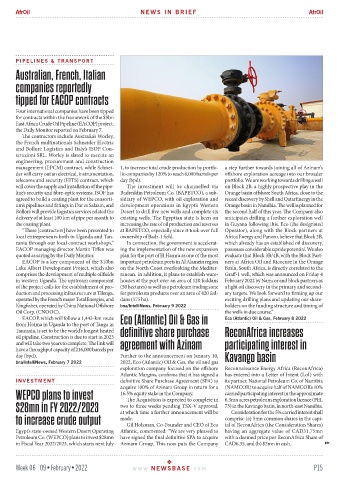 delivery of at least 100 km of pipe per month to existing wells. The Egyptian state is keen on anticipates drilling a further exploration well