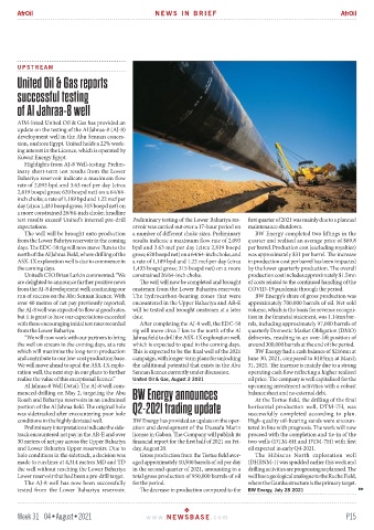 tested from the Lower Bahariya reservoir. The decrease in production compared to the BW Energy, July 28 2021