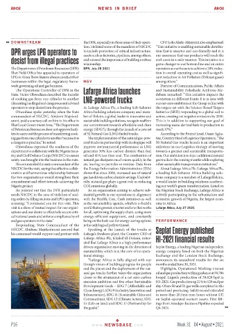 He pointed out that the DPR particularly As an organisation aiming to achieve sub- the Nigerian Stock Exchange, Lafarge Africa is