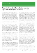 The election ratings of Ukrainian President Po- roshenko are collapsing, according to poll results released on March 19 by the Kyiv International Institute of Sociology. Former Ukrainian prime minister and Batkivshchyna (Fatherland) faction leader Yulia Tymoshenko has opened a wide lead in the survey conducted by the well respected Kyiv In- ternational Institute of Sociology (KIIS) in February.
