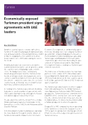 According to the Turkmen government, Berdimu- hamedov secured a number of agreements with UAE leaders during his trip, although the Kuwait visit did not appear to bear much fruit.