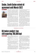 ThE governments of sudan and south sudan have arranged to extend the term of a bilateral agreement on co-operation in the oil and gas sec- tor. e current accord between the parties was due to expire on November 30, 2019. however, Mayen Wol Jong, south sudan’s undersecretary of petroleum, and his sudanese counterpart, hamid suleiman hamid, agreed during a meet- ing in Khartoum last week to push the deadline back to March 2022.