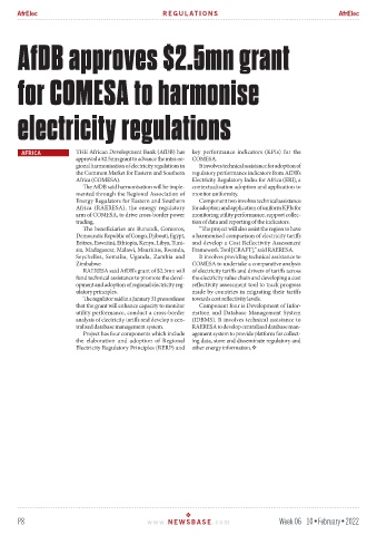 arm of COMESA, to drive cross-border power monitoring utility performance, support collec-