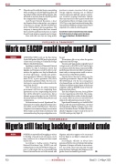 Uganda and Tanzania hope to build EACOP along a 1,445-km route from Hoima, a city near the Lake Albert oilfields, to Tanga, a port on the shore of the Indian Ocean. The link will eventu- ally allow Uganda to export crude at the rate of 216,000 barrels per day (bpd).