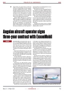 EXXONMOBIL has awarded a three-year con- tract to an Angolan aircraft operator. The con- tract provides for Bestfly, which operates both fixed-wing and rotary vessels, to meet the US super-major’s requirements for moving staff back and forth between Luanda, the capital of Angola, and its primary oil logistics base in Soyo.