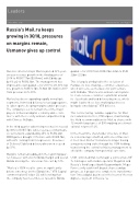 Mail.ru has been expanding rapidly in multiple segments, from food delivery, to taxi aggregators, to cyber sports, keeping margins under pressure. The company is set to remain one of the major players in Russian digital economy and e-com- merce with the recently announced partnership with Chinese AliBaba.
