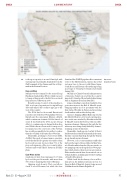 The IPSA line hooks around Kuwait and joins the route of the East-West pipeline between Riyadh and the supergiant Khurais oilfield, which contains an estimated 20.1bn barrels of crude. It was built in the 1980s as part of Iraqi e orts to continue exports during the Iran-Iraq war. While it has not been used to transport oil for many years, the conversion of the 625-km line would presumably be far swi er to realise than the overhaul of the entire East-West line.