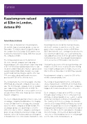 The listing marks the first initial public offering (IPO) made by a Kazakh company in over a dec- ade. The first Kazakh company to list in London was copper miner Kaz Minerals in 2005. The Kazatomprom IPO will be seen as a pilot exercise ahead of more IPOs to be made by state-owned Kazakh companies.