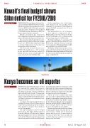 KENyAN President uhuru Kenyatta revealed last week that the country had become an exporter of crude oil. Kenyatta told members of his cabinet in a meeting on August 1 that Kenya had sold its rst batch of crude. “We are now an oil exporter. Our rst deal was concluded this a ernoon with 200,000 barrels [valued] at a price of$12mn,”hewasquotedassayinginagovern- ment press release.