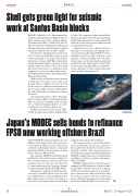 BRAZIL’S Ministry of the Environment has given Royal Dutch Shell a green light to proceed with a seismic survey of two adjacent o shore blocks known as BM-S-54 and Sul de Gato do Mato. Both sites lie within the Santos Basin, and the latter is an extension of the former’s southern edge that contains the Gato do Mato oil eld.