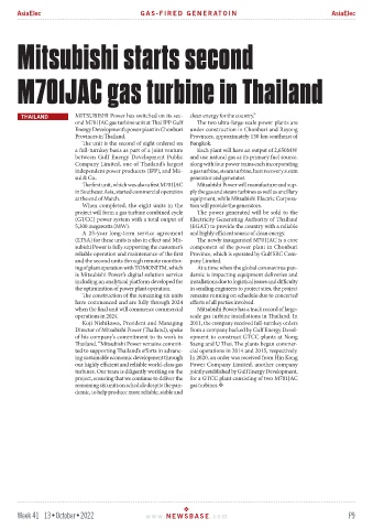 THAILAND MITSUBISHI Power has switched on its sec- clean energy for the country.”
