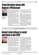 Optima Group, part of Zarubezhneft, said recently that the Brod refinery would start using natural gas to fuel its internal processes from the third quarter of 2020. The gas would replace fuel oil as a power source for the refinery. The com- pany is in the process of signing agreements and selecting a contractor to carry out construction and installation work for putting in place a gas supply network and connecting it to Croatia’s natural gas system.
