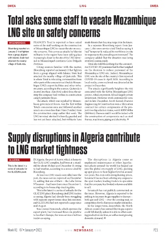 Bloomberg reported on of Mozambique LNG to vacate the site on secu- uary 1, the news service cited Total as saying it