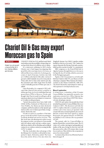 MOROCCO CHARIOT Oil & Gas (UK) said last week that it Maghreb-Europe Gas (MEG) pipeline makes