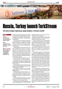 Turkey already imports 16 bcm of Russian gas annually through Blue Stream. That pipeline, which also runs under the Black Sea, launched in 2003. Notably, Turkstream is launching ahead of the completion of the last part of the Southern Gas Corridor (SGC) that will allow Azerbaijan to export Caspian Sea gas to the European Union market via pipelines stretching across Azerbai- jan, Georgia, Turkey, Greece, Albania and the Adriatic Sea. The last part of the SGC, the US- and EU-backed Trans Adriatic Pipeline (TAP), will launch later this year. It is to have an initial capacity of 10 bcm that can be expanded to more than 20 bcm.
