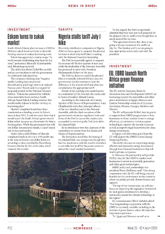 Eskom turns to sukuk Nigeria stalls tariff July 1 the planned hike in tariffs even though they so