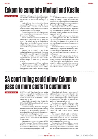 SOUTH AFRICA ESKOM is insisting that it will finish construc- disruptions.