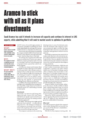 SAUDI ARABIA SAUDI Aramco, the world’s largest producer of divesting shares in some of its domestic assets.