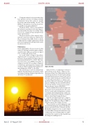 As a result, India’s oil import dependence climbed from 83.8% in April-June 2018 to 85.2% in the most recent quarter. Gas import depend- ence increased from 48.7% to 50.4%. e coun- try is projected to spend INR8tn ($112.8bn) on oil imports in 2019-20, according to Ministry of Petroleum and Natural Gas estimates that assume an oil price of $66 per barrel and an aver- age exchange rate of INR71 to the dollar.
