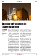 Citing three sources familiar with the mat- ter, Reuters reported on March 26 that Qatar Petroleum (QP) had approached several buy- ers in Asia and Europe offering spot cargoes of LNG. The move is an unusual one for the LNG exporter, which typically relies on long-term offtake agreements to sell gas.
