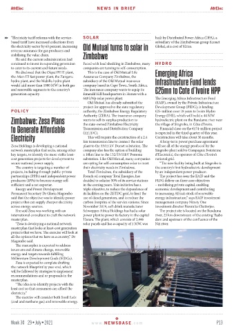 POLICY authority, the Zimbabwe Energy Regulatory €25-million over 18 years to Ivoire Hydro
