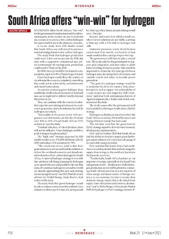 SOUTH AFRICA HYDROGEN offers South Africa a “win-win” be 10mn tpy, while chemicals and refining would