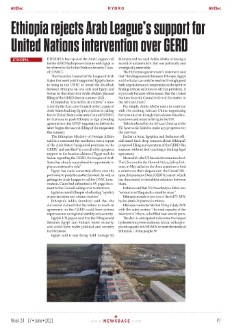 ETHIOPIA ETHIOPIA has rejected the Arab League’s call Ethiopia and accused Addis Ababa of having a