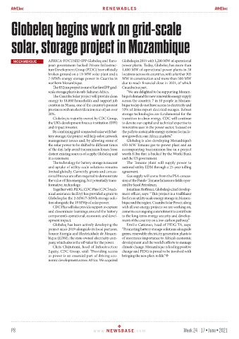 tion alongside the 19 MWp of solar power. bique and the region. Cuamba Solar Power, along