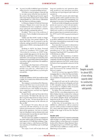 the Port Harcourt refining complex. planning and execution for long-awaited TAM.