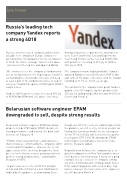 Originally from Belarus, the company has a cor- porate headquarters in New York and does most of its business internationally. It has been a good example of a successful tech company coming out of the Commonwealth of Independent States (CIS), and striking deals with a raft of blue chip names. However, the lion’s share of its engineers are still based in Minsk.