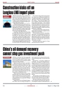 This is the first energy infrastructure project the company has participated in building since its launch in December 2019. Pipeline assets operated by China’s three national oil compa- nies (NOCs) – China National Offshore Oil Corp. (CNOOC), China National Petroleum Corp. (CNPC) and Sinopec – were combined into PipeChina that month. The move was aimed at improving efficiency and guaranteeing sup- plies. Indeed, the Longkou terminal was previ- ously being developed by CNOOC before being handed over to PipeChina.