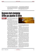 Gazprom CEO Alexei Miller announced to Russian media on May 18 that the company had begun design and surveying work for the pipe- line, which will pump up to 50bn cubic metres per year of Russian gas to consumers in China. This comes after Russian President Vladimir Putin cleared Gazprom to begin preparation for the project in late March.
