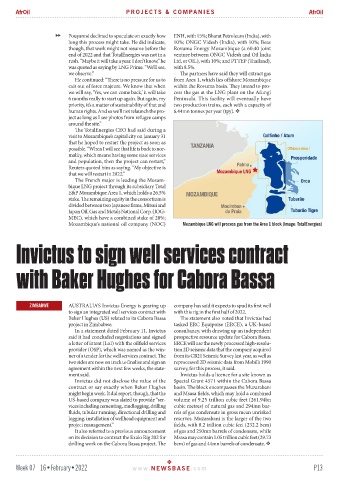 Baker Hughes (US) related to its Cabora Bassa The statement also noted that Invictus had