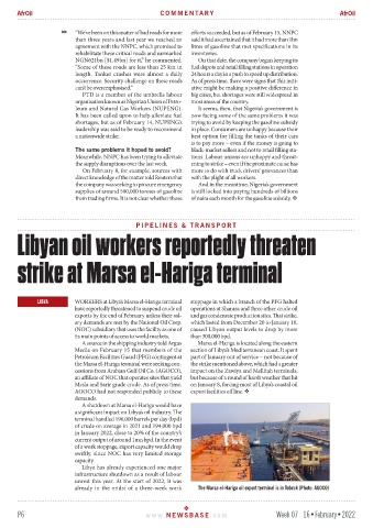 LIBYA WORKERS at Libya’s Marsa el-Hariga terminal stoppage in which a branch of the PFG halted