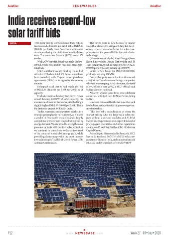 slightly higher INR2.37 ($0.03) per kWh. This is low bids are made, attracted by generous govern-