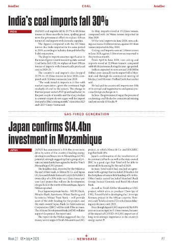 INDIA INDIA’S coal imports fell by 29.7% to 48.84mn In May, imports stood at 15.22mn tonnes,