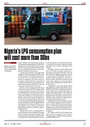 He also stressed, though, that these goals would remain out of reach if the country could not attract enough investment to cover the costs of establishing the necessary infrastructure. With respect to production, he said, Nigeria needs to spend about $500mn on the construction of facilities capable of extracting LPG from feed- stocks such as natural gas liquids (NGLs) and associated gas. He indicated that Abuja hoped to see private companies such as Seplat Petroleum and international oil companies (IOCs) such as ExxonMobil, as well as state-owned Nigerian National Petroleum Corp. (NNPC), engage in LPG production.