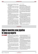 Norway’s Equinor won a licence for the Hassi Mouina area in 2005 and went on to make sev- eral gas discoveries. However, it later withdrew from the venture, leaving Sonatrach as its sole developer. Development plans indicate the pro- ject could yield 2.8 bcm per year.