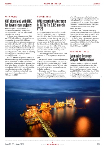 yield and high feed flexibility. KBR’s solvent of Rs. 17,709 crore, PBT of Rs. 2,556 crore and