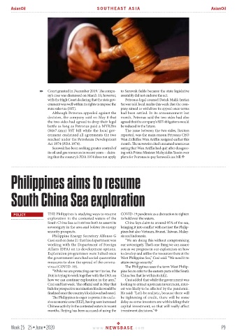 Court granted in December 2019. The compa- to Sarawak fields because the state legislative