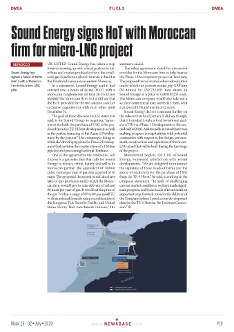 firm for its micro-LNG In a statement, Sound Energy said it had under which the partner would pay GBP2mn