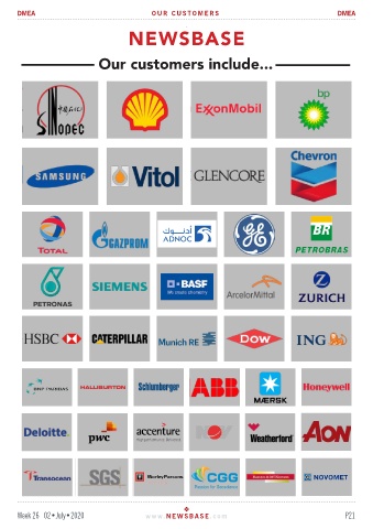 v DMEA OUR CUSTOMERS DMEA NEWSBASE Our customers include... If you are interested in your company’s logo appearing on this page, please contact your Customer Week 26 02•July•2020 Accounts Manager on +44 131 478 7000. P21 www. NEWSBASE .com